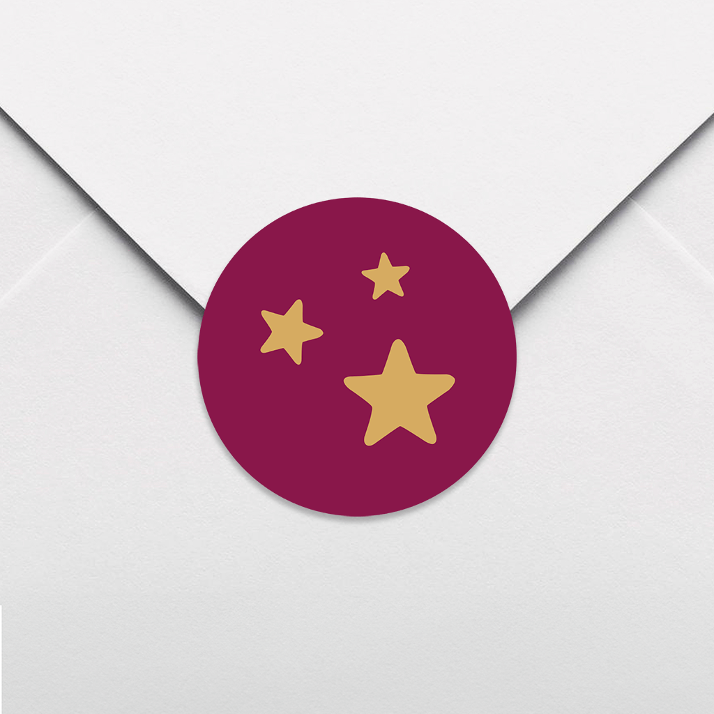 Autocollant rouge avec étoiles dorées – 25 ex.