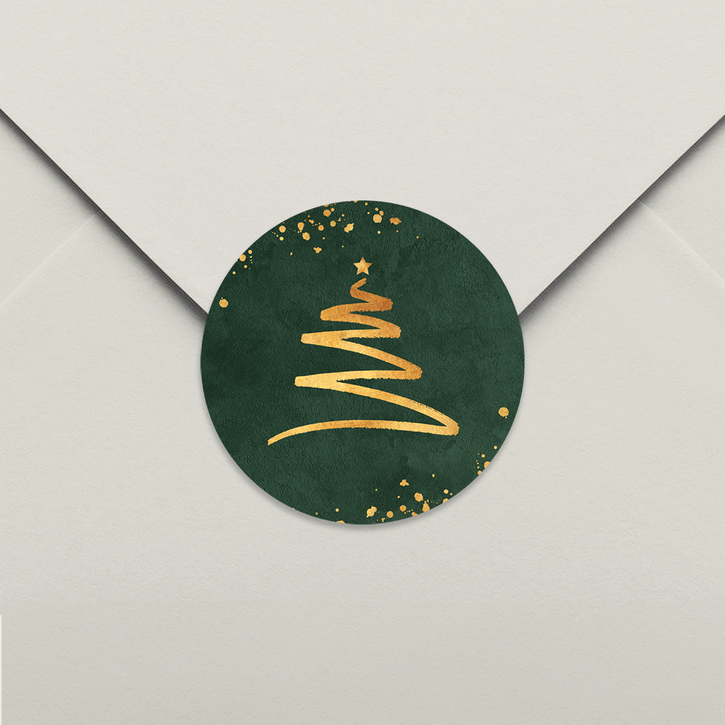 Autocollant vert foncé avec sapin doré – 25 ex.