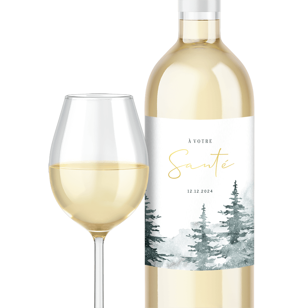 Étiquette de bouteille avec sapins à l'aquarelle – 5 ex.