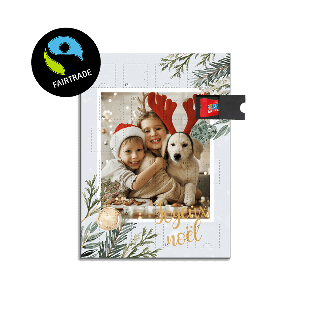 Commandez votre calendrier de l'Avent personnalisé avant le 15 novembre afin de le recevoir à temps pour le 1er décembre et profiter des chocolats Tony's Chocolonely tout au long de la période de l'Avent.
