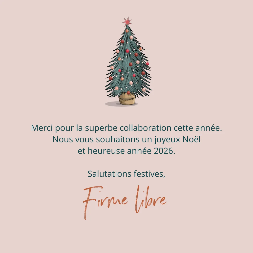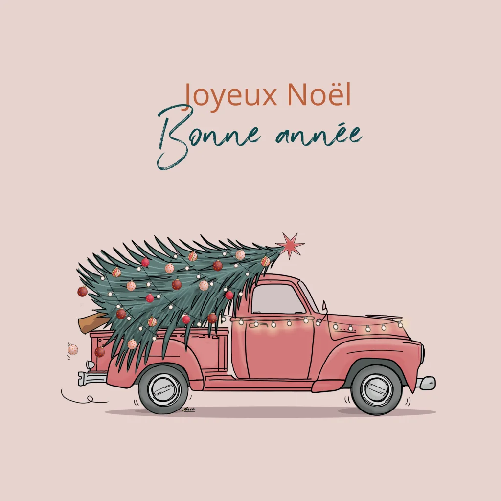 Carte de Noël professionnelle avec une camionnette et un sapin de Noël.