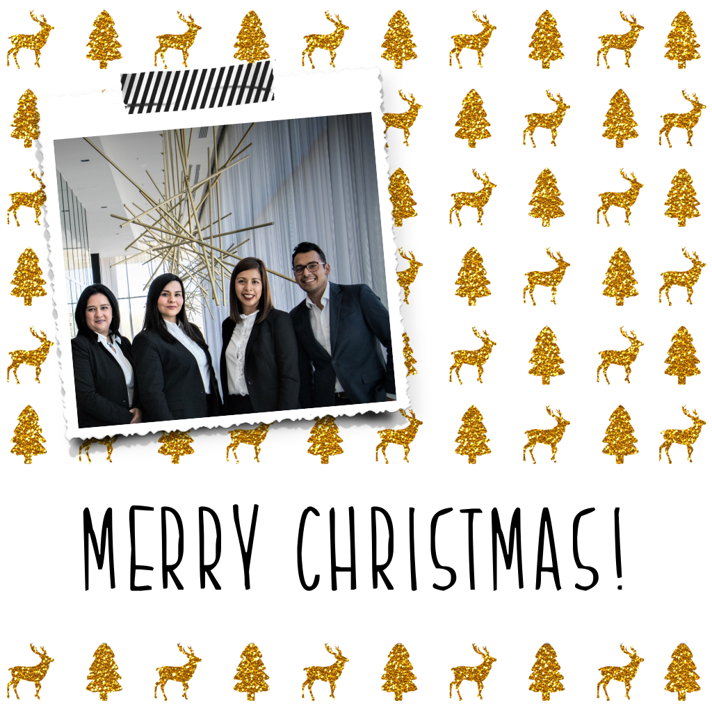 Carte de Noël professionnelle avec des rennes et sapins dorés.