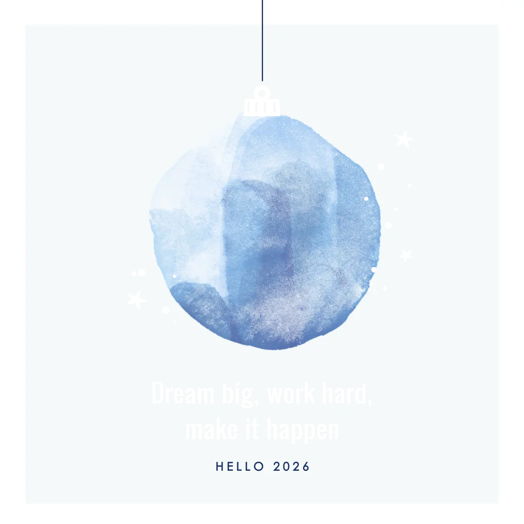 Carte de Noël avec des dorures et une boule de Noël aquarelle.