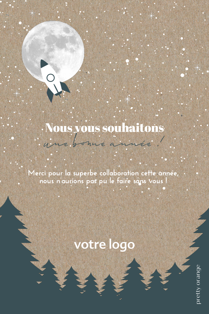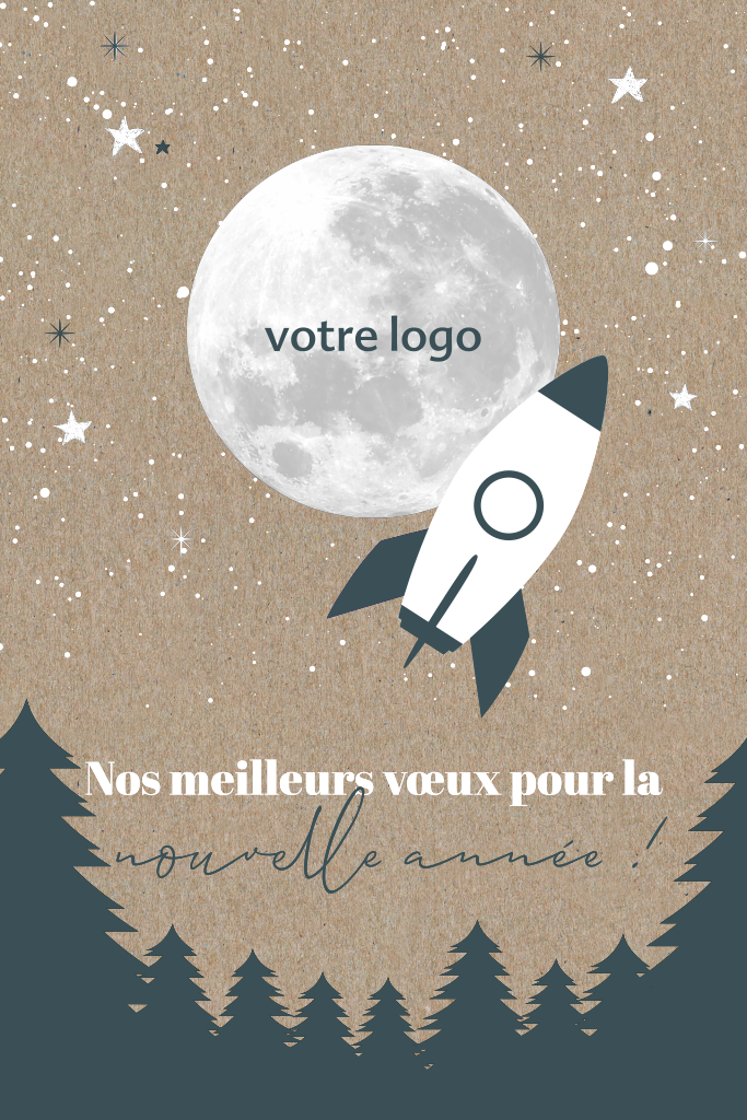 Carte de vœux professionnelle kraft avec une fusée et lune