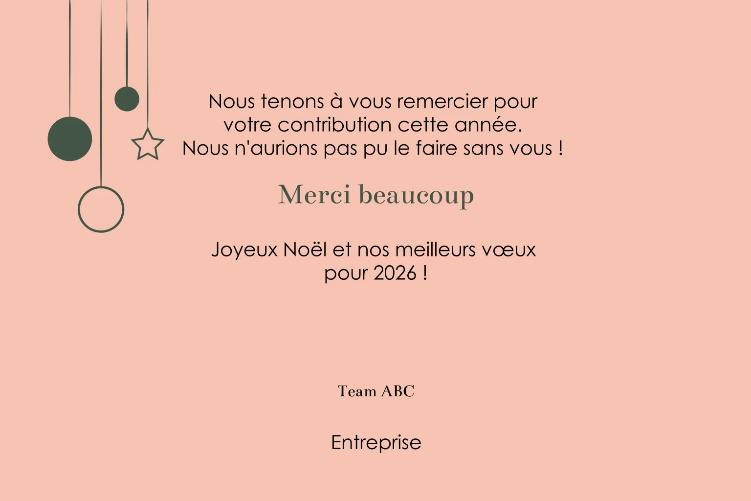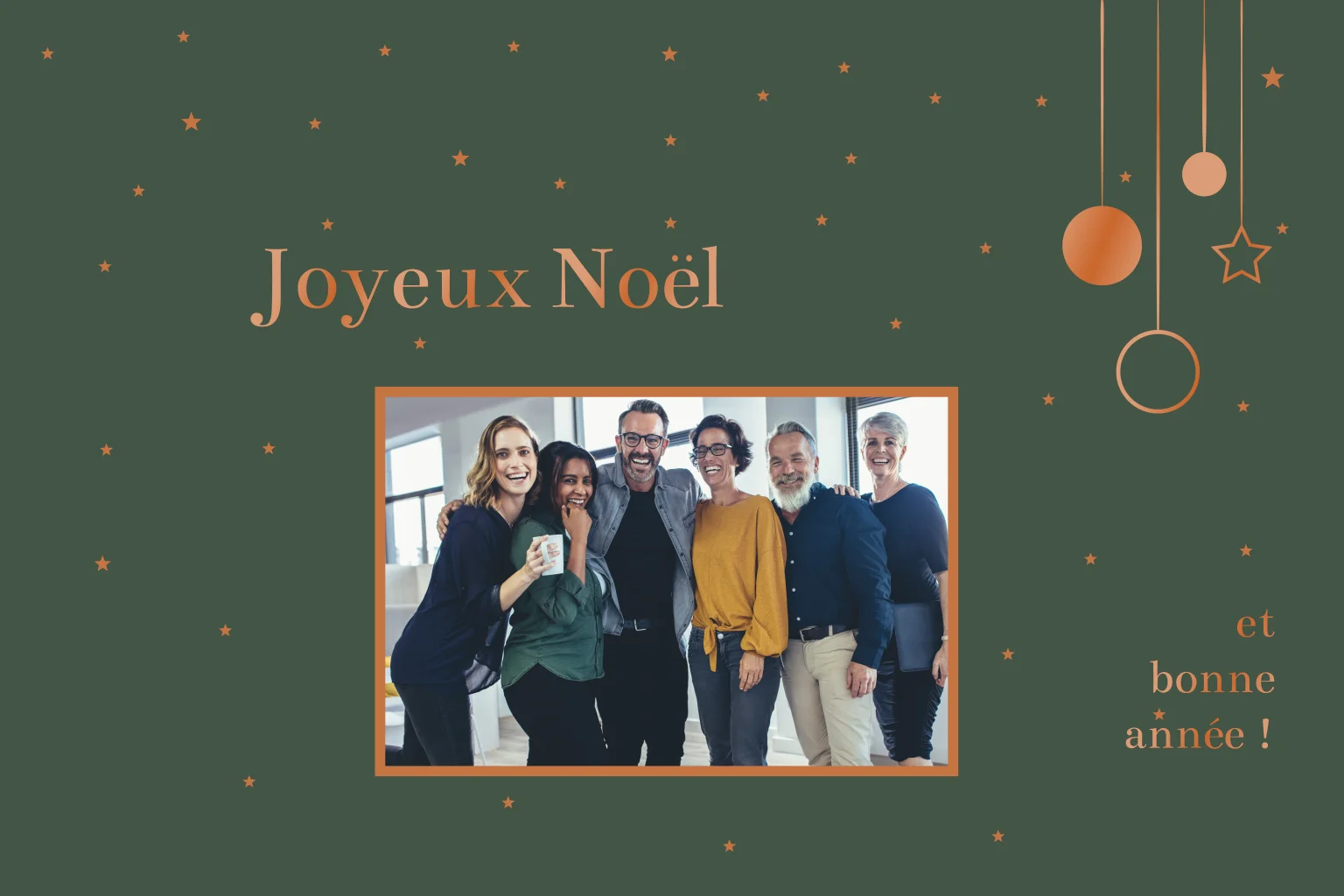 Carte de Noël avec un photo et boules de Noël en vernis.