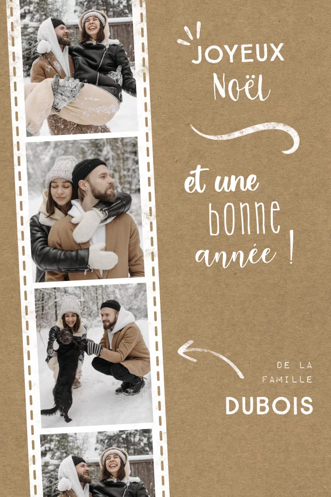 Carte de Noël avec aspect kraft, écriture blanche et photos