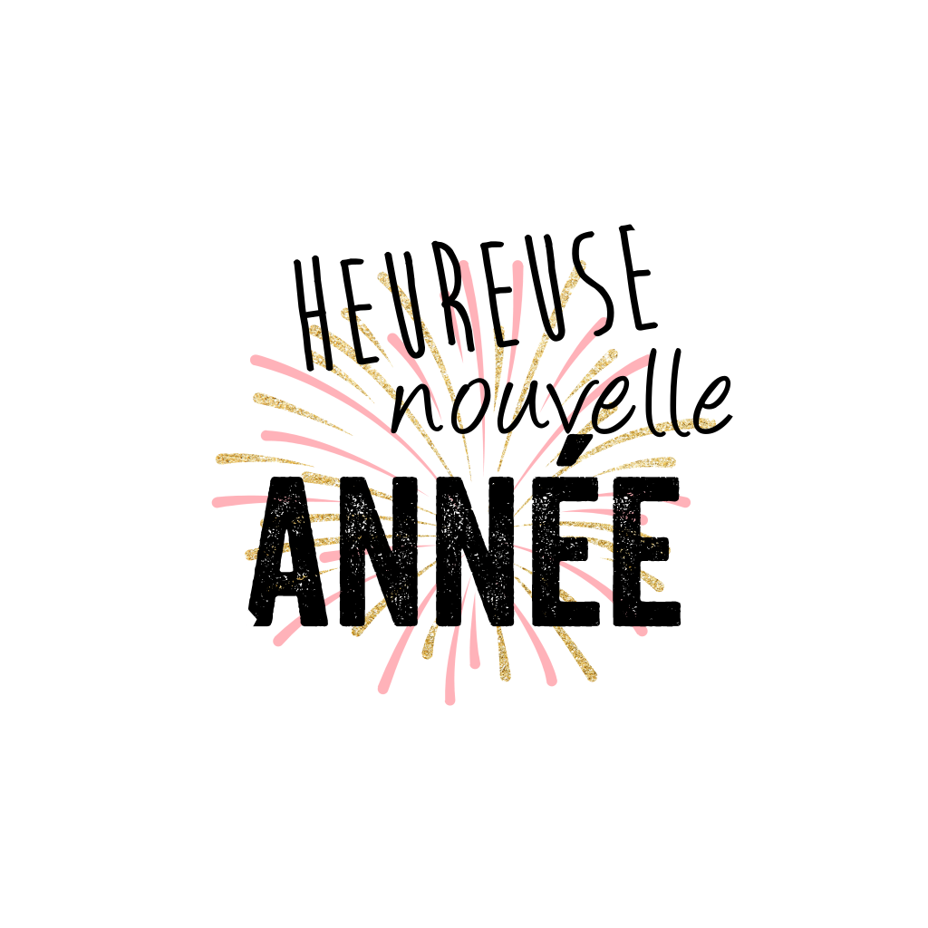 Carte de vœux avec des confettis et feux d'artifice en dorure rosée.
