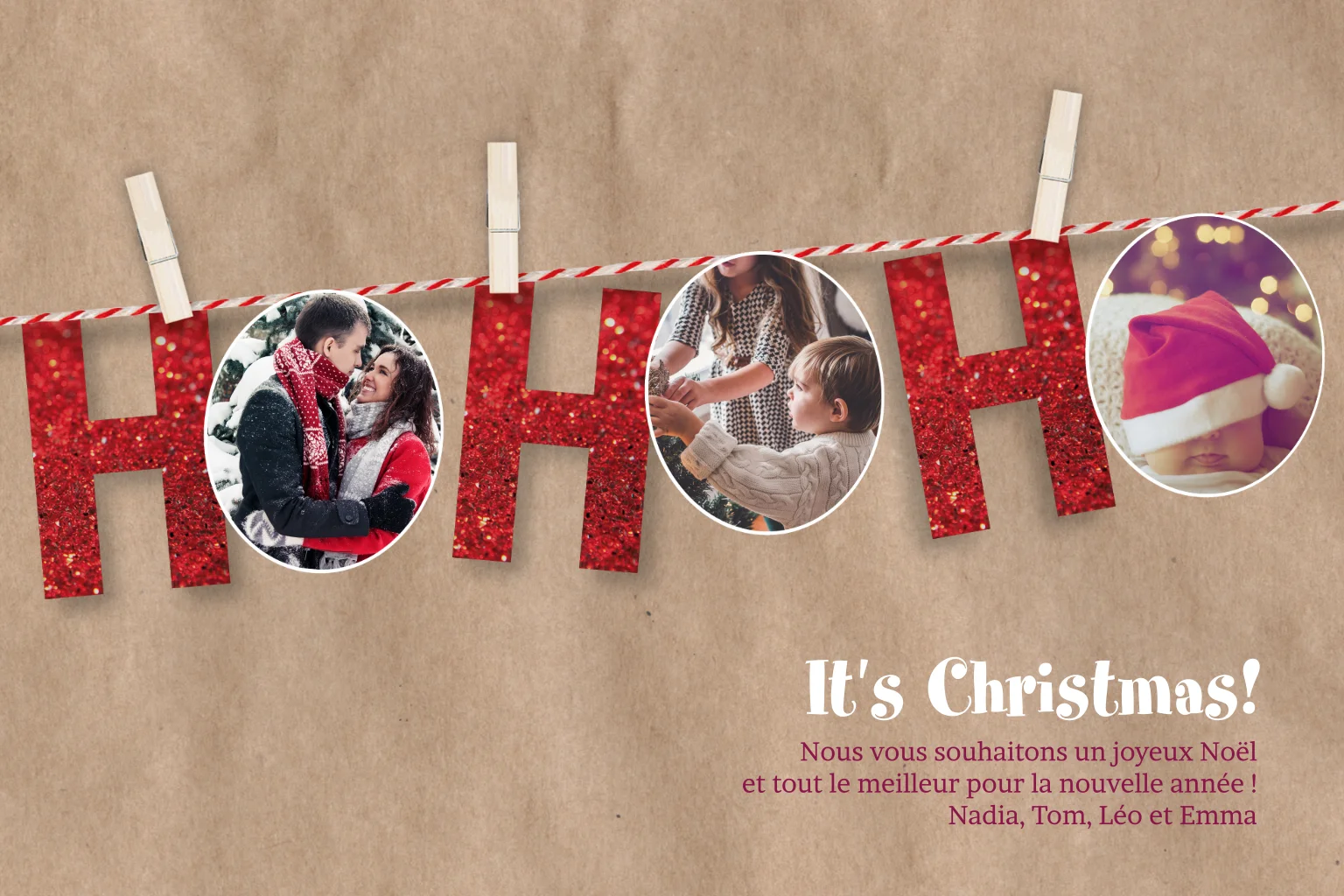 Carte de Noël originale et jolie avec des photos.