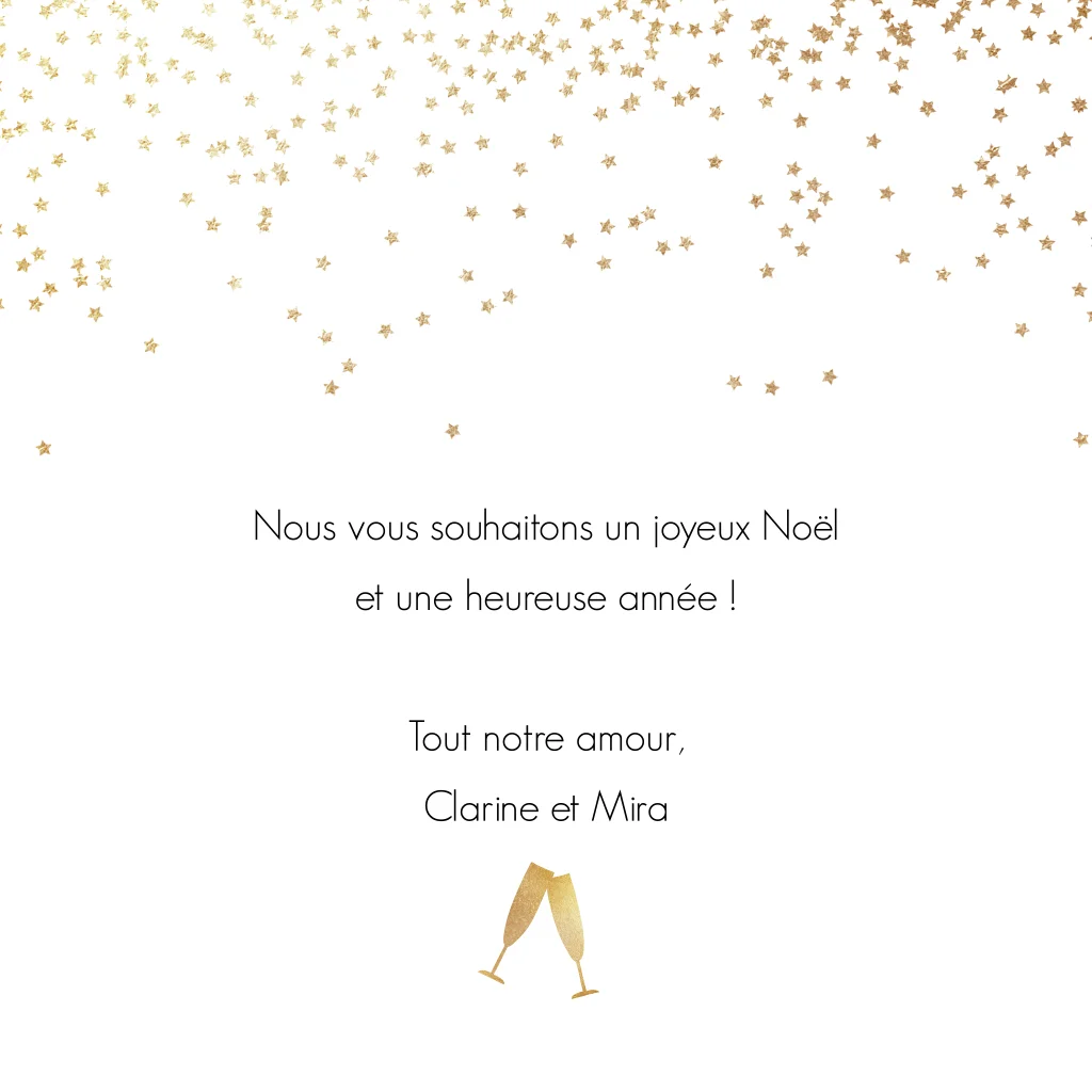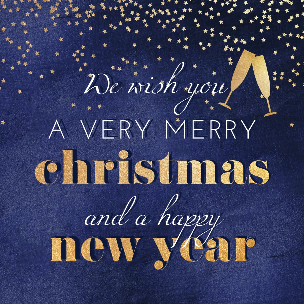 Carte de Noël festive avec des petites étoiles sur fond bleu foncé.