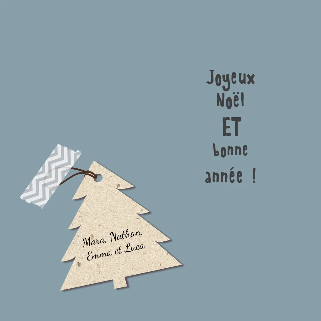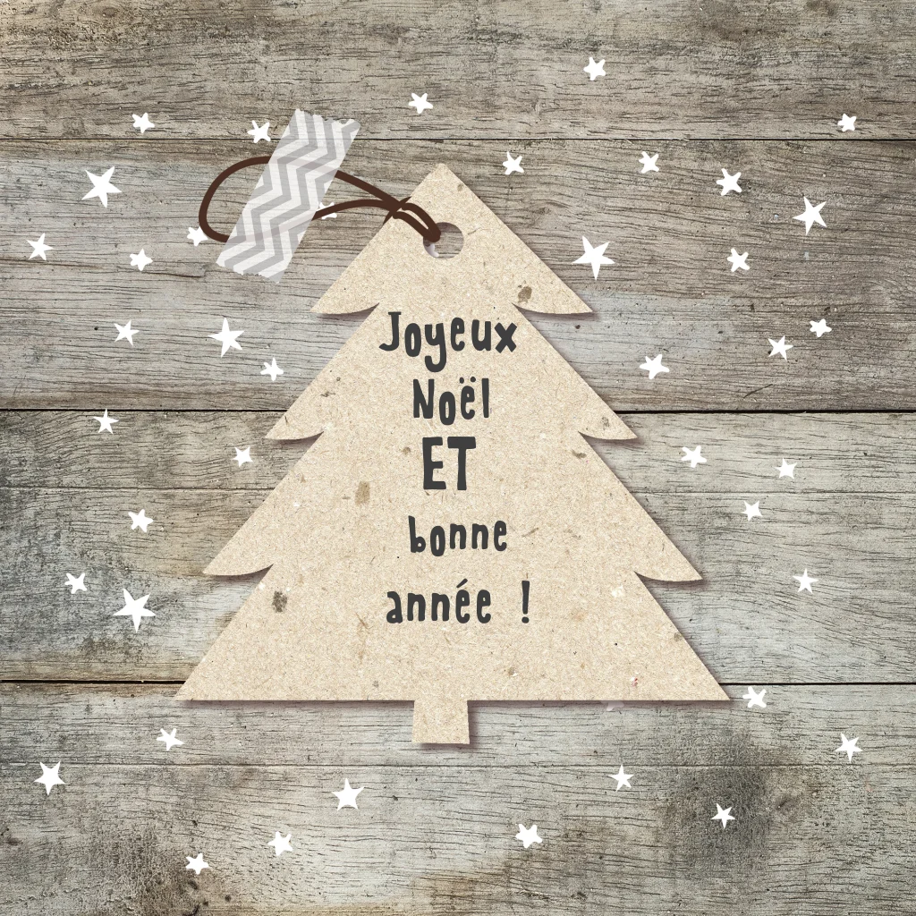 Carte de Noël moderne avec un sapin de Noël en bois.