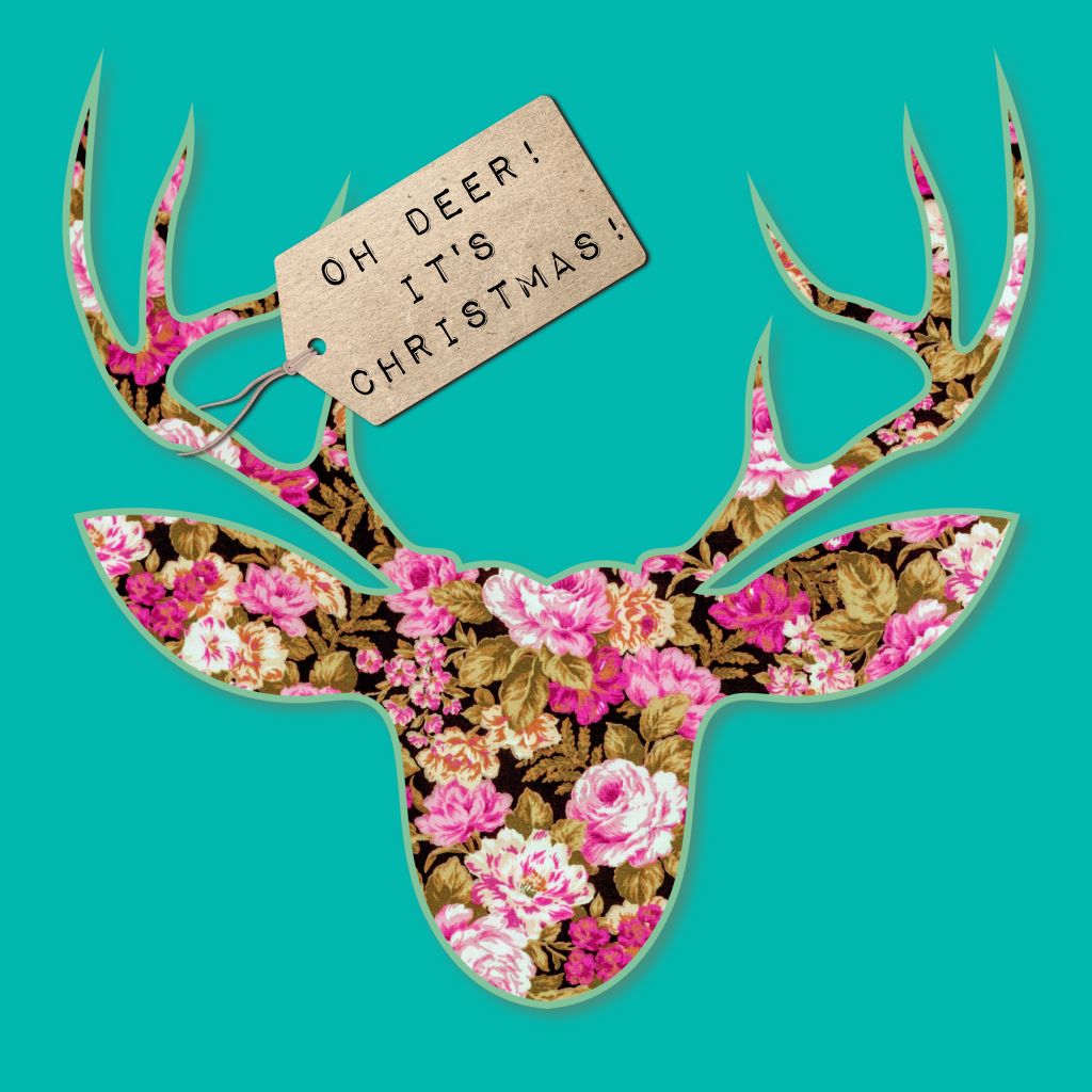 Carte de Noël rétro et drôle avec un cerf en motif floral.