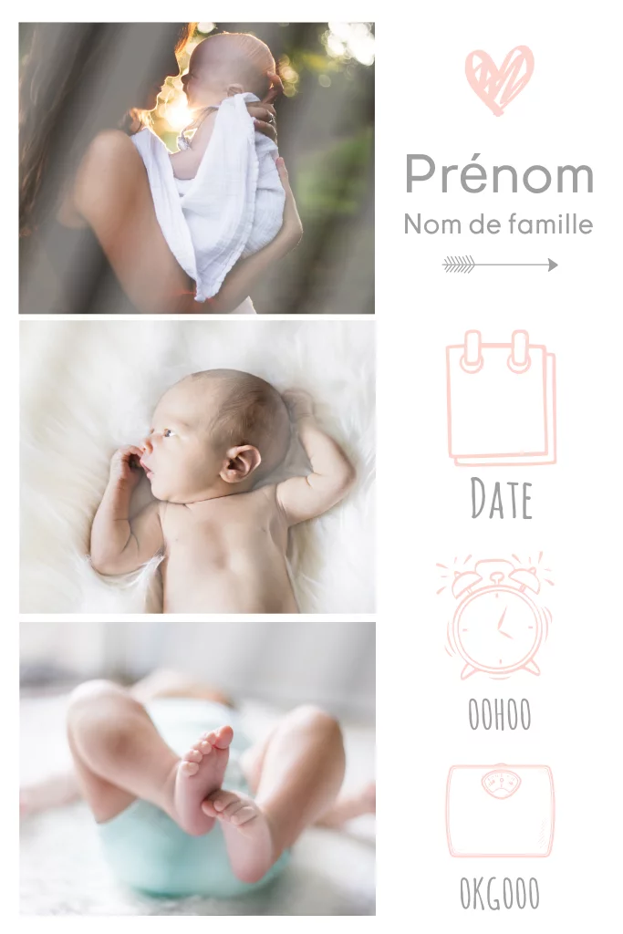 Faire-part de naissance avec bandes de photos