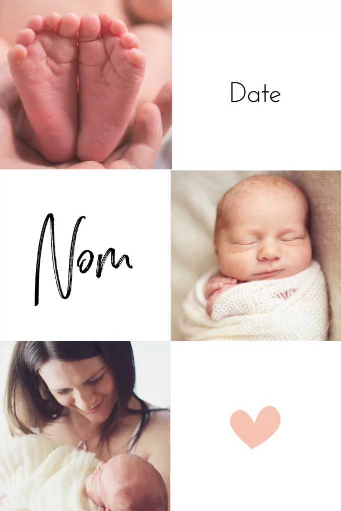 Faire-part de naissance avec trois images et des cœurs - Fille