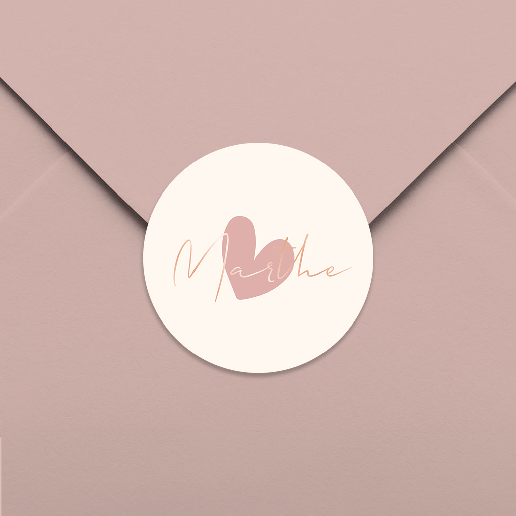 Autocollant avec cœur et nom en dorure rosée - 25 pièces