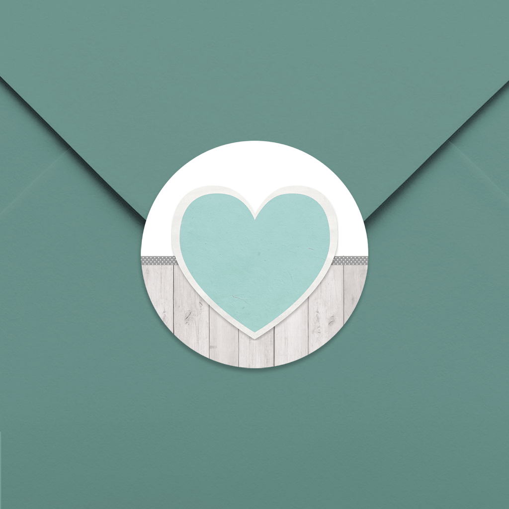 Autocollant avec design en bois et cœur bleu - 25 pièces