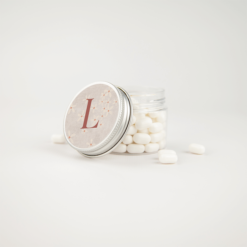 Autocollant doux avec fleurs et initiale rouge - 20 ex. ø 44 mm