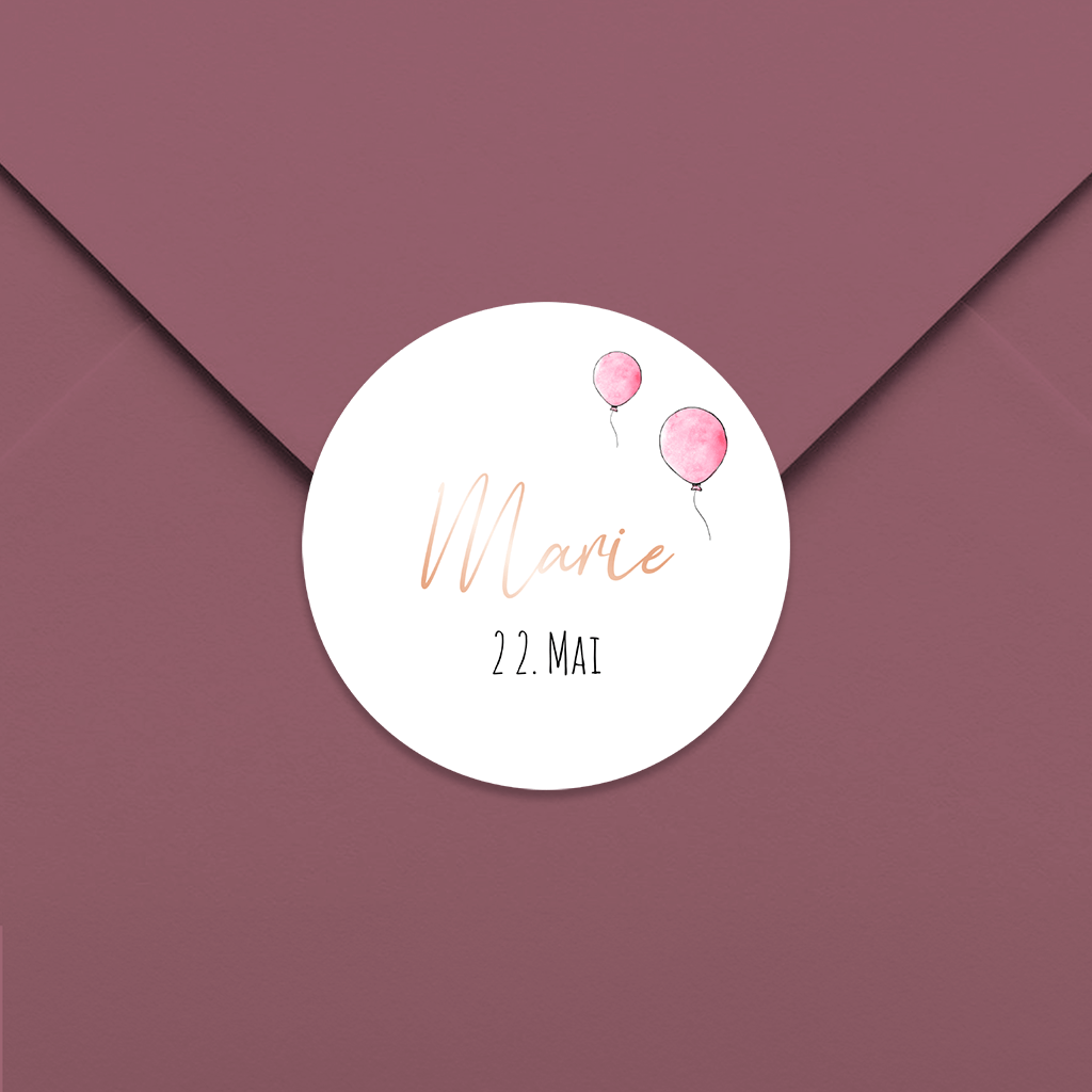 Autocollant avec nom en dorure rosée et ballon rose - 25 pièces
