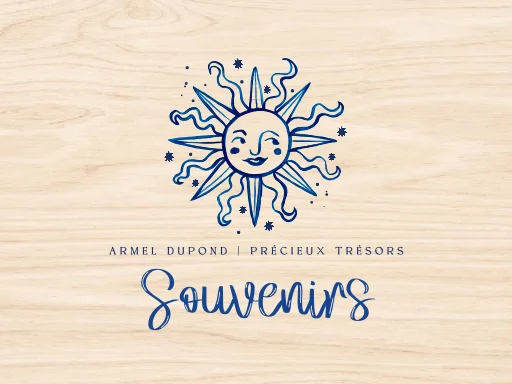 Boîte à souvenirs avec étoiles et soleil et écriture bleue