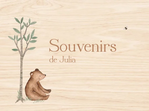 Boîte à souvenirs avec un ours, une abeille et un arbre
