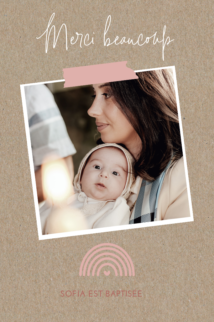 Carte de remerciement de baptême avec arc-en-ciel en rose et photo