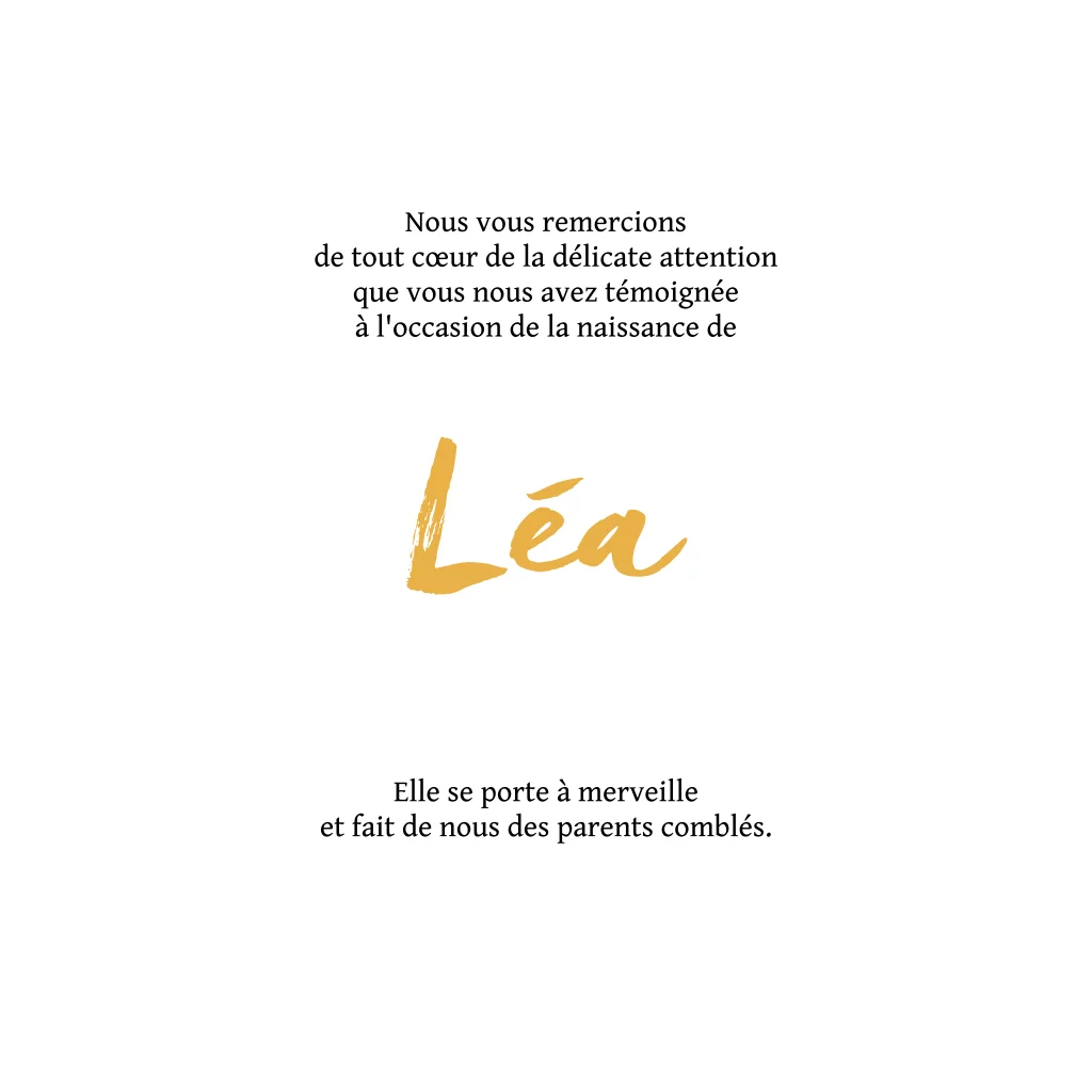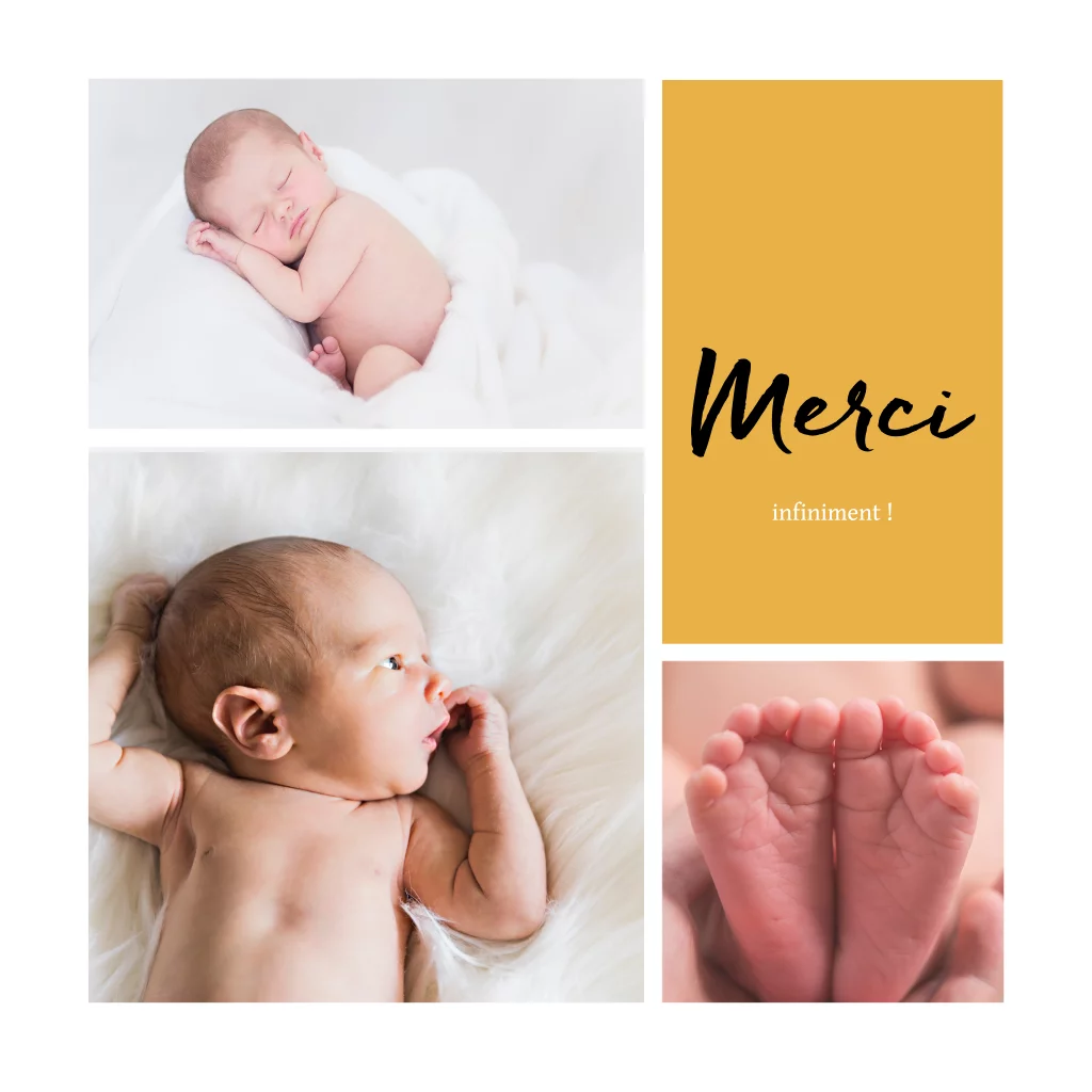 Carte de remerciement bébé avec photos et des accents de couleur ocre