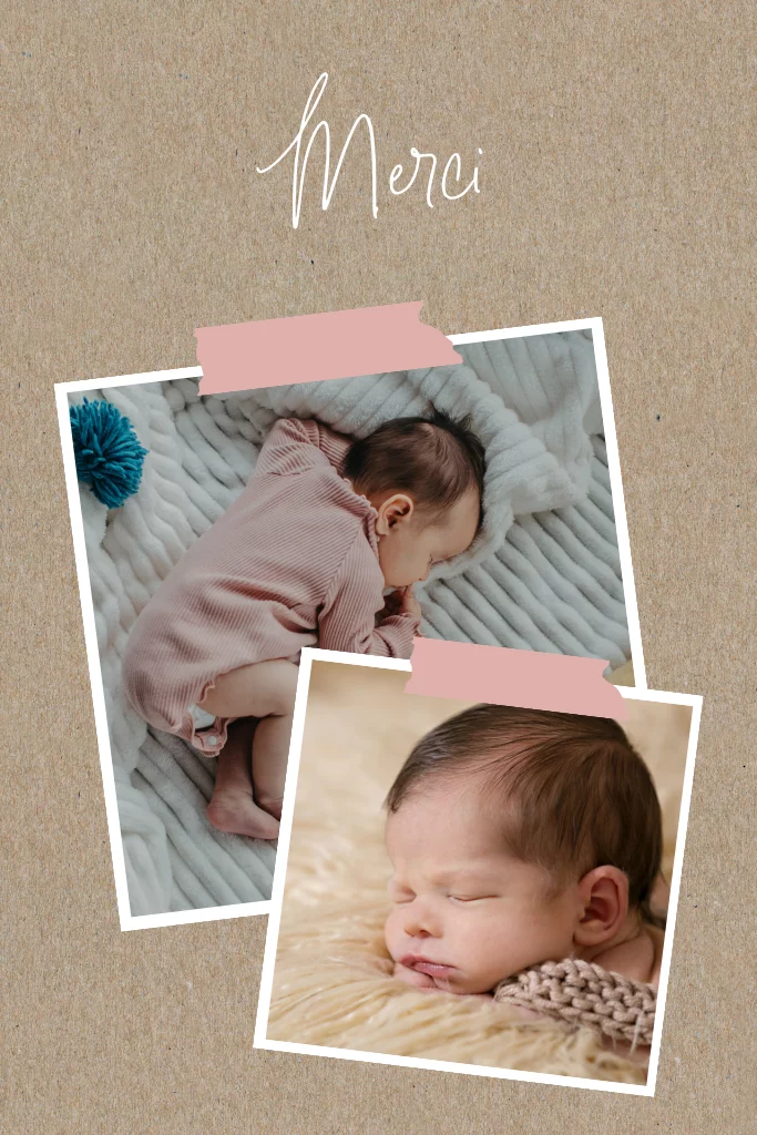 Carte de remerciement avec des polaroids sur aspect kraft.