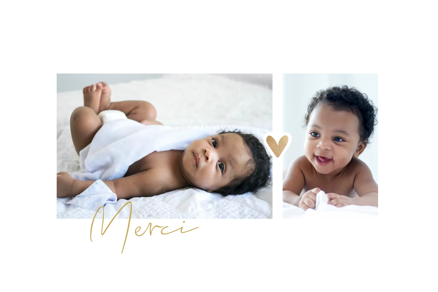 Carte de remerciement pour la naissance avec des photos et des cœurs