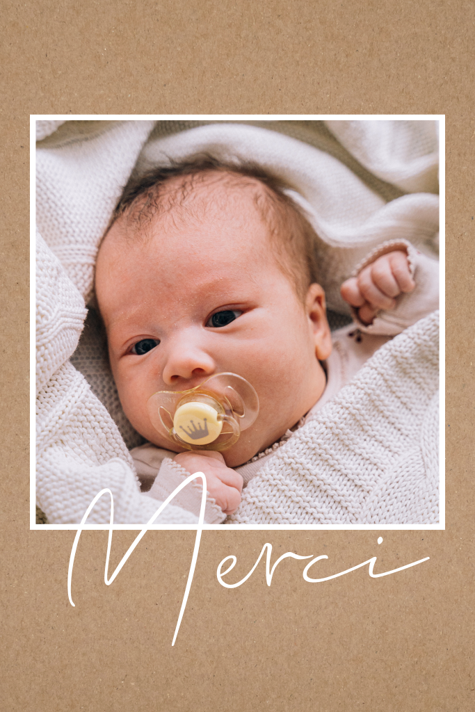 Carte de remerciement naissance avec des photos sur aspect kraft