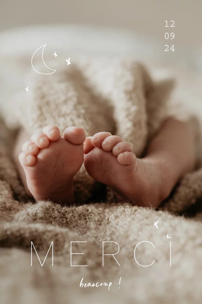 Carte de remerciement avec coins arrondis et dorure. Photographe : @annevgfotografie