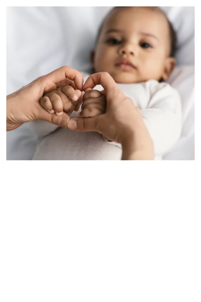 Carte de remerciement de naissance avec photo et cœur en dorure.