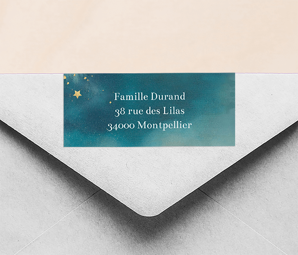Étiquettes d'expéditeur en bleu avec des étoiles - 14 pièces.