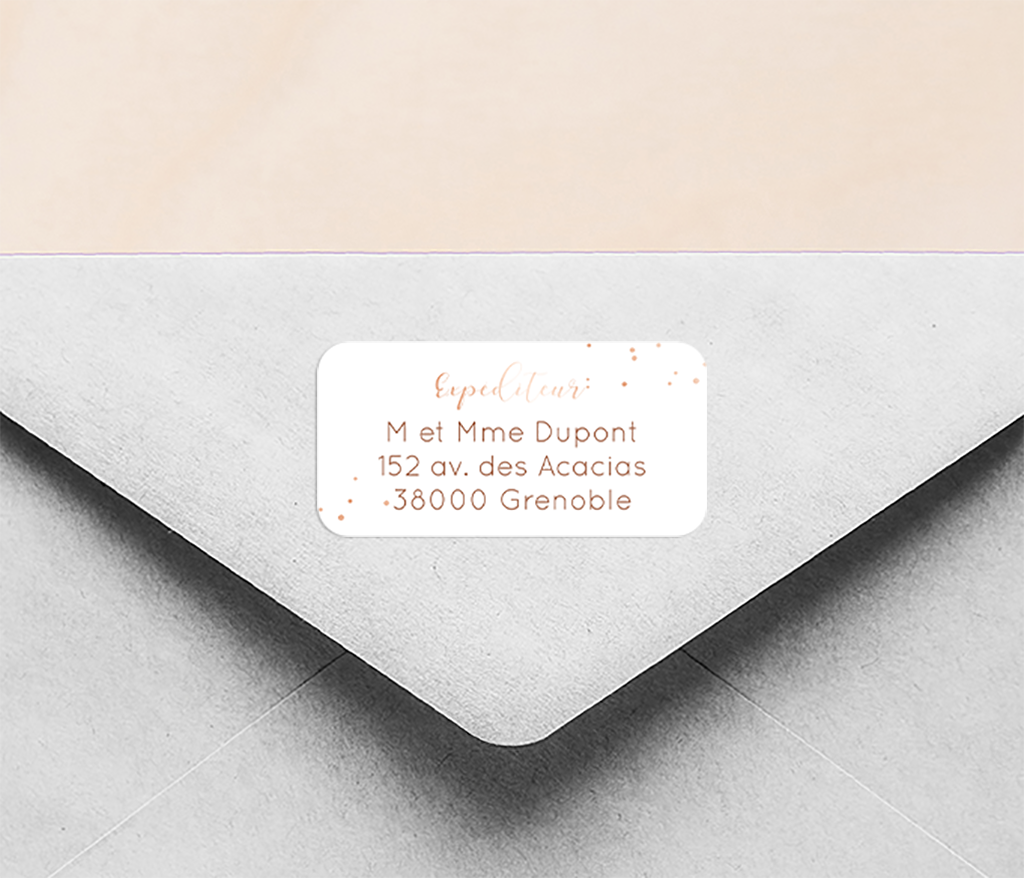 Étiquettes d'expéditeur en dorure rosée - 14 pièces