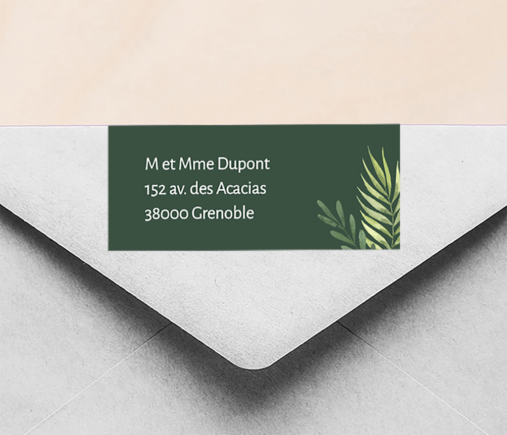 Étiquettes d'expéditeur en vert avec des feuilles - 14 pièces