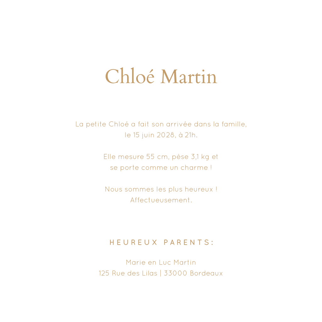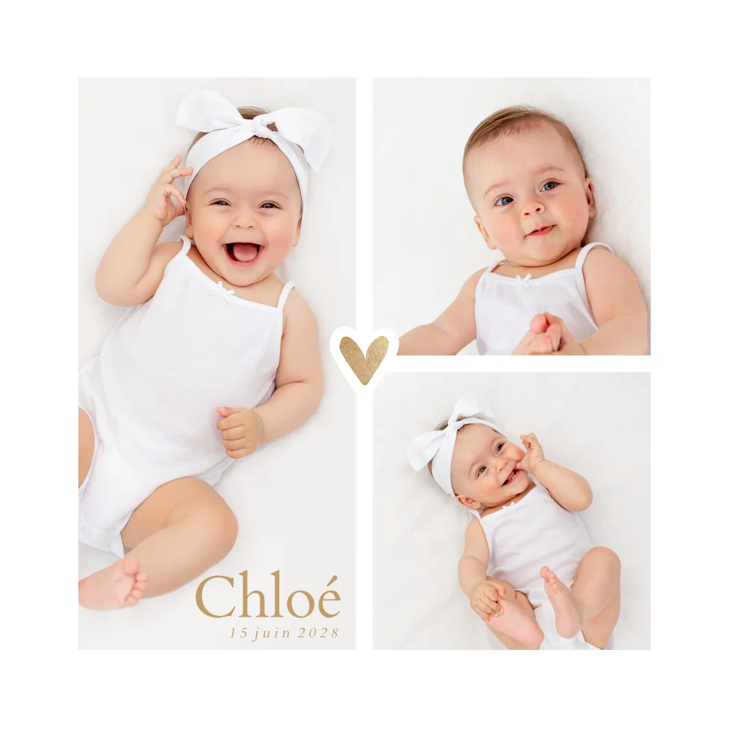 Faire-part de naissance avec photos et coeur doré