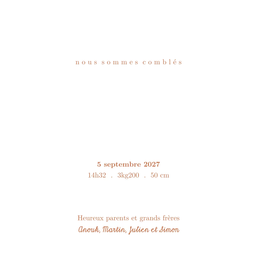 Faire-part de naissance avec illustrations de vêtements de bébé et fleurs
