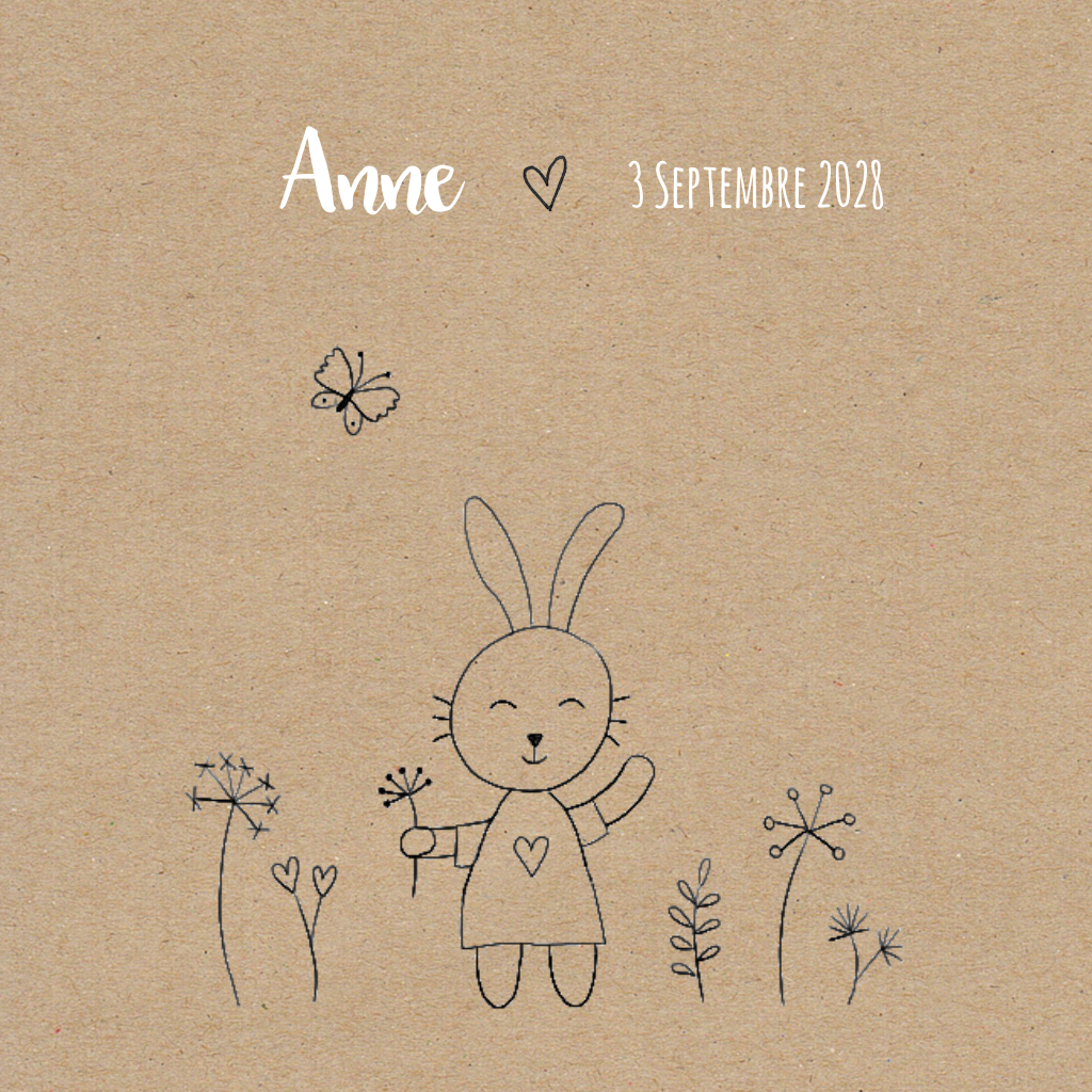 Faire-part de naissance avec un dessin de lapin sur impression kraft