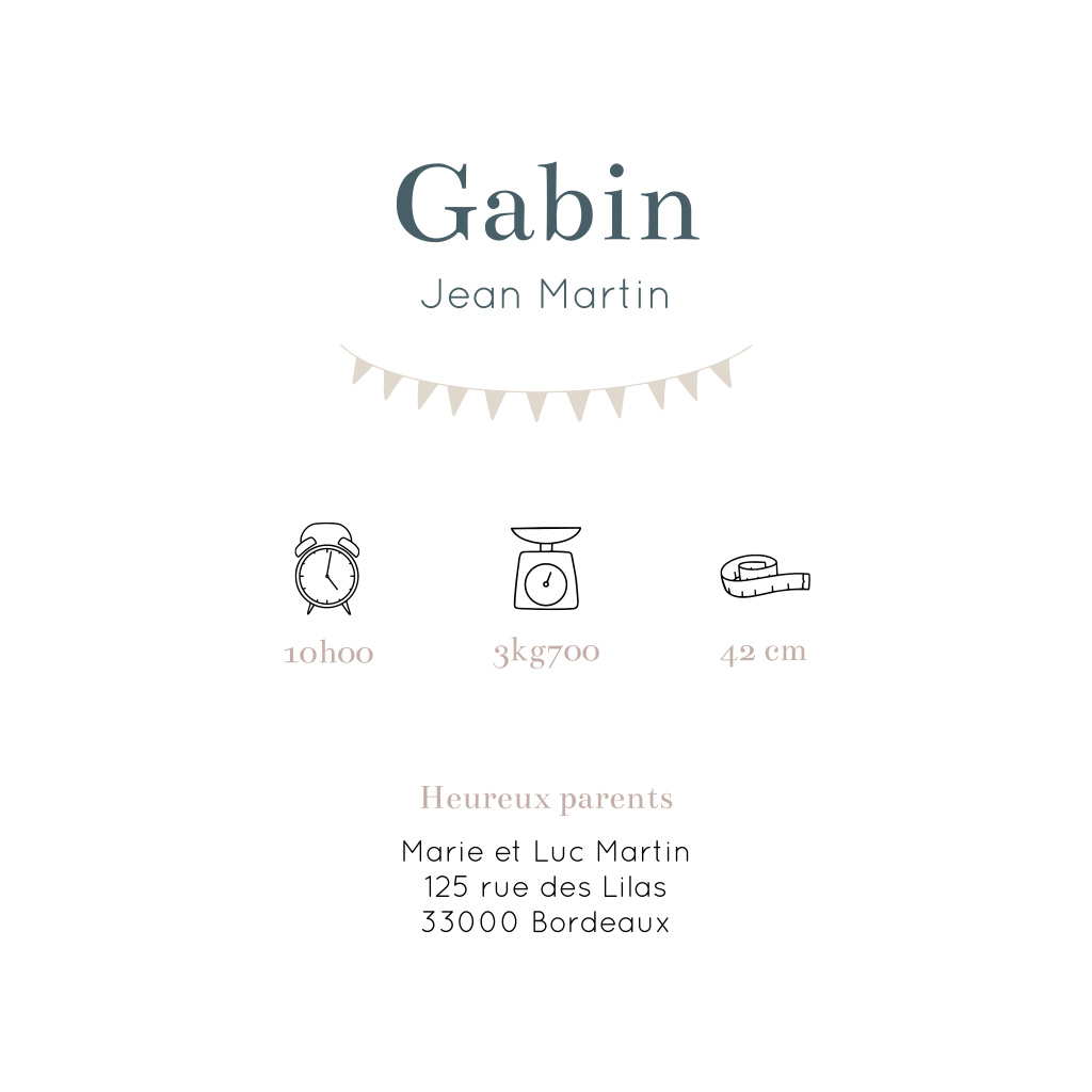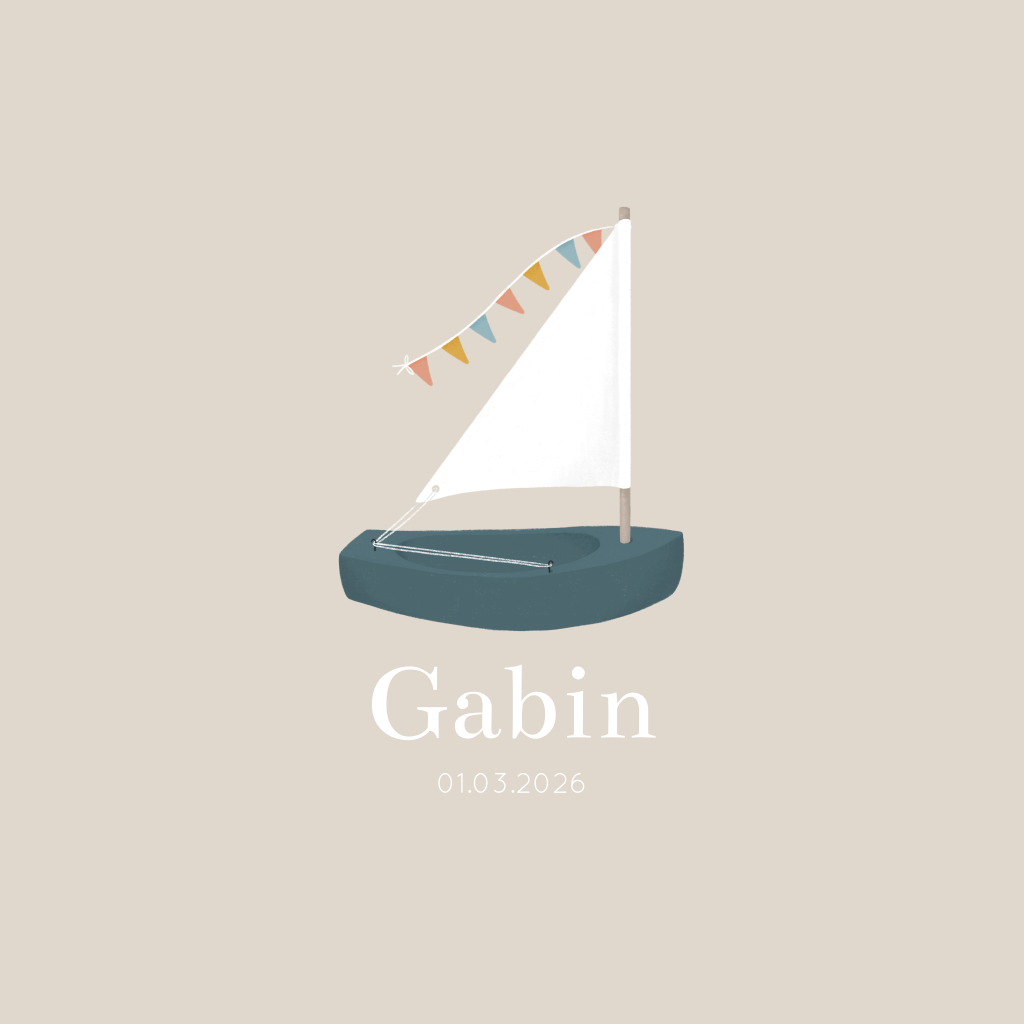 Faire-part de naissance avec bateau sur un fond beige