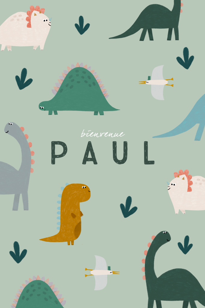 Faire-part de naissance avec photo, dinosaures et fond vert