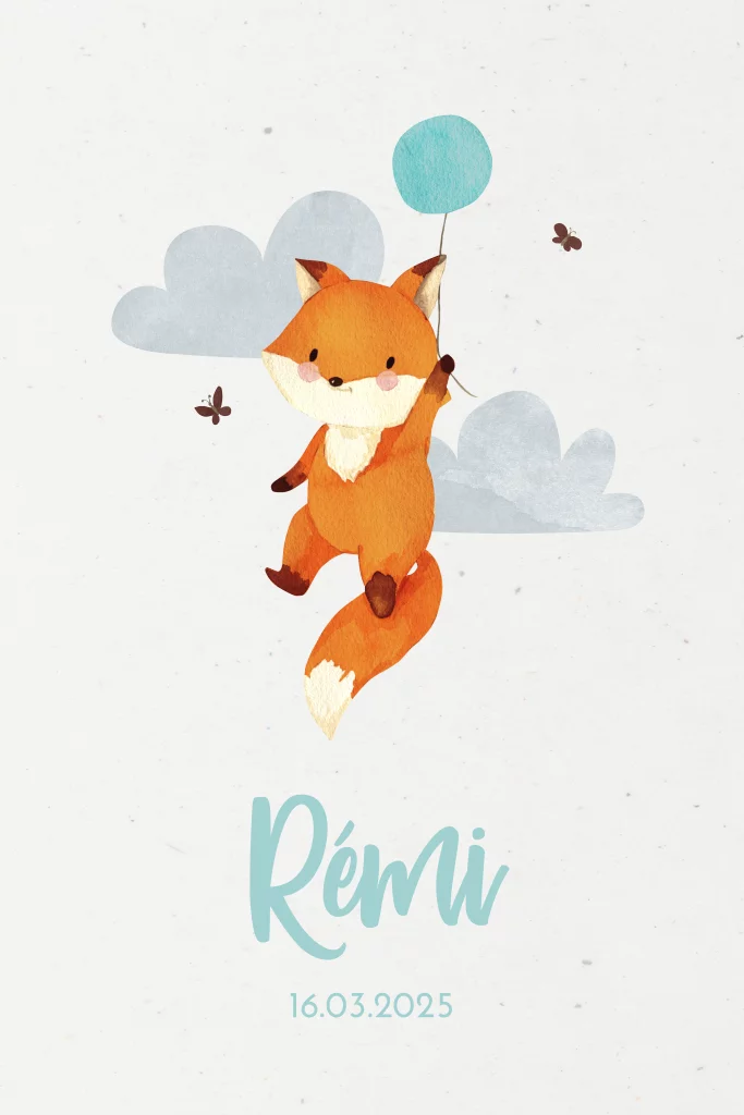 Faire-part de naissance Renard et ballon bleu