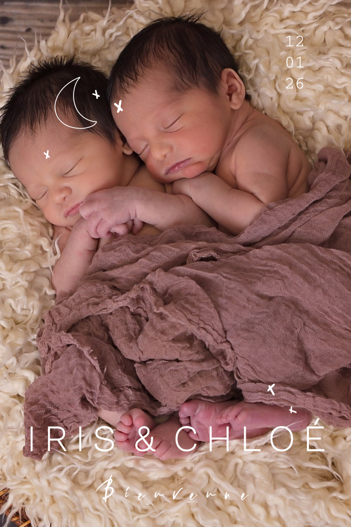 Hourra, les voilà ! La famille vient de s’agrandir doublement ! Partagez avec fierté ce double bonheur avec votre famille, vos amis et vos connaissances avec ce faire-part de naissance à la fois simple et élégant mettant à l’honneur la photo de vos deux chérubins, à personnaliser comme vous l’entendez ! C’est la toute première correspondance que vos proches recevront de vos bébés, et avec cette carte aux coins arrondis frappée d’un texte et de détails graphiques en dorure, elle sera forcément marquante ! Photographe : @annevgfotografie