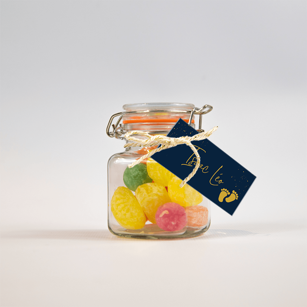 Étiquette en bleu et dorée avec des empreintes de bébé - 10 pièces.