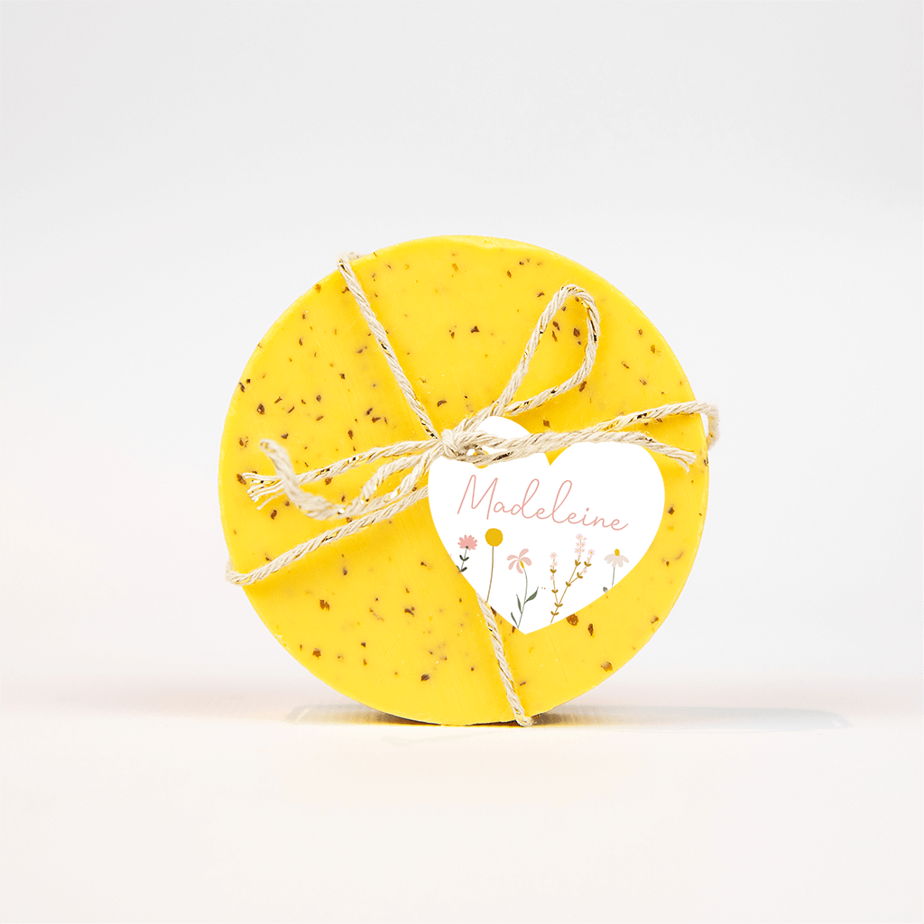 Étiquette en cœur avec des fleurs des champs