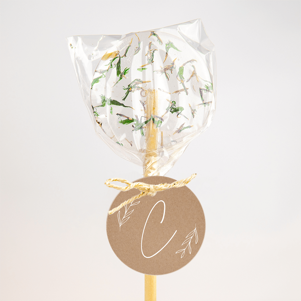 Étiquette avec initiale et feuillage sur fond brun - 16 pièces