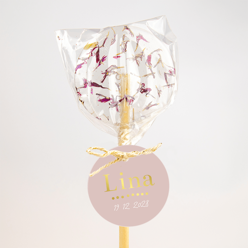 Étiquette en rose avec le prénom en dorure - sur carton couché, 16 pièces.