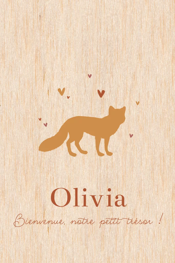 Faire-part de naissance sur bois avec silhouette d'un renard
