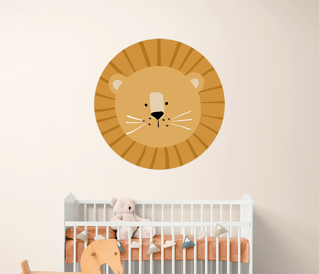 Papier peint rond avec dessin lion jaune