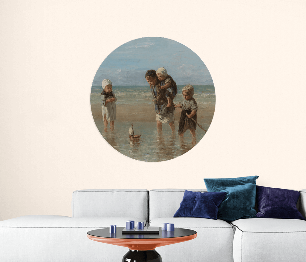 Papier peint rond avec peinture d'enfants à la mer