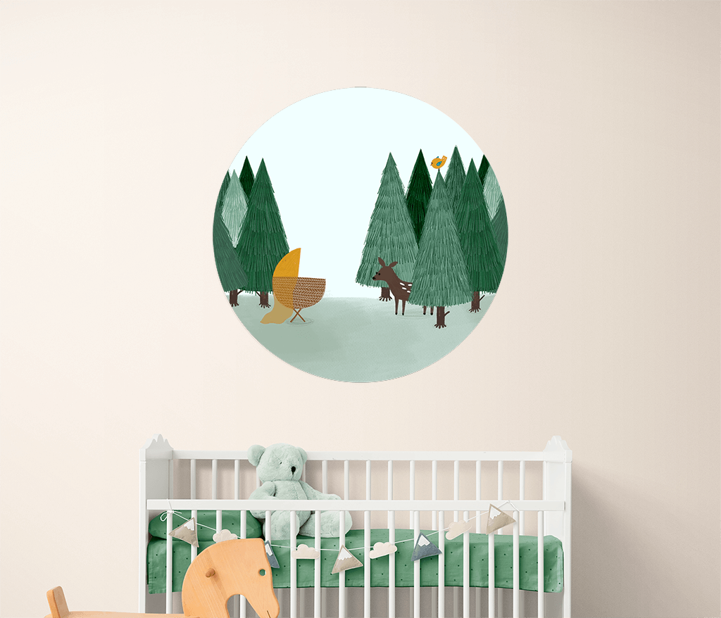 Papier peint rond avec berceau dans une forêt