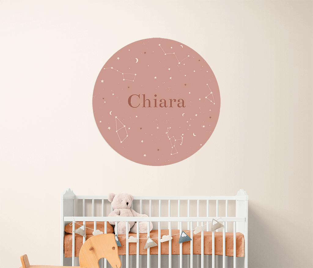 Papier peint rond en terra cotta avec prénom et constellations