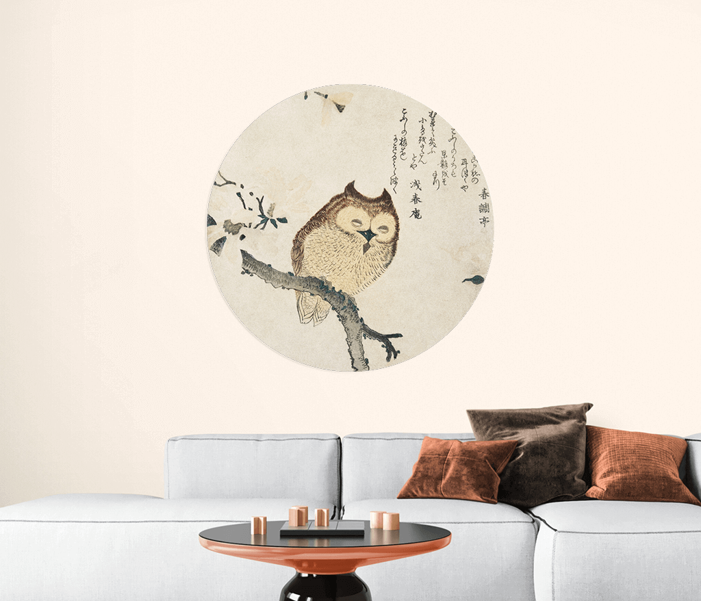 Papier peint rondavec hibou de Kubota Shunman